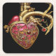 Steampunk Heart Anatomical Rubies and Gears Square Paper Coaster