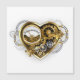 Mechanical, volumetric, steampunk heart with pressure gauge, steel and gold gears on white background. Steampunk style.