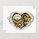 Mechanical, volumetric, steampunk heart with pressure gauge, steel and gold gears on white background. Steampunk style.