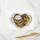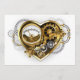 Mechanical, volumetric, steampunk heart with pressure gauge, steel and gold gears on white background. Steampunk style.