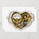 Mechanical, volumetric, steampunk heart with pressure gauge, steel and gold gears on white background. Steampunk style.