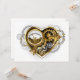 Mechanical, volumetric, steampunk heart with pressure gauge, steel and gold gears on white background. Steampunk style.