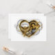 Mechanical, volumetric, steampunk heart with pressure gauge, steel and gold gears on white background. Steampunk style.