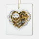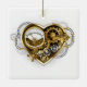 Mechanical, volumetric, steampunk heart with pressure gauge, steel and gold gears on white background. Steampunk style.