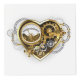 Mechanical, volumetric, steampunk heart with pressure gage, steel and gold gears on white background. Steampunk style.