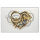 Mechanical, volumetric, steampunk heart with pressure gauge, steel and gold gears on white background. Steampunk style.