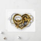 Mechanical, volumetric, steampunk heart with pressure gauge, steel and gold gears on white background. Steampunk style.