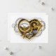 Mechanical, volumetric, steampunk heart with pressure gauge, steel and gold gears on white background. Steampunk style.