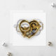 Mechanical, volumetric, steampunk heart with pressure gauge, steel and gold gears on white background. Steampunk style.