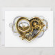 Mechanical, volumetric, steampunk heart with pressure gauge, steel and gold gears on white background. Steampunk style.