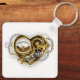 Mechanical, volumetric, steampunk heart with pressure gauge, steel and gold gears on white background. Steampunk style.