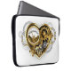 Mechanical, volumetric, steampunk heart with pressure gauge, steel and gold gears on white background. Steampunk style.