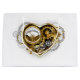 Mechanical, volumetric, steampunk heart with pressure gauge, steel and gold gears on white background. Steampunk style.