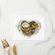 Mechanical, volumetric, steampunk heart with pressure gauge, steel and gold gears on white background. Steampunk style.