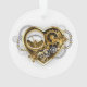 Mechanical, volumetric, steampunk heart with pressure gauge, steel and gold gears on white background. Steampunk style.