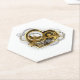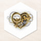 Mechanical, volumetric, steampunk heart with pressure gage, steel and gold gears on white background. Steampunk style.