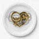 Mechanical, volumetric, steampunk heart with pressure gauge, steel and gold gears on white background. Steampunk style.