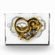Mechanical, volumetric, steampunk heart with pressure gauge, steel and gold gears on white background. Steampunk style.