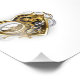 Mechanical, volumetric, steampunk heart with pressure gauge, steel and gold gears on white background. Steampunk style.