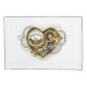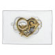 Mechanical, volumetric, steampunk heart with pressure gauge, steel and gold gears on white background. Steampunk style.