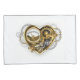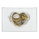 Mechanical, volumetric, steampunk heart with pressure gage, steel and gold gears on white background. Steampunk style.