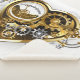 Mechanical, volumetric, steampunk heart with pressure gauge, steel and gold gears on white background. Steampunk style.