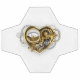 Mechanical, volumetric, steampunk heart with pressure gauge, steel and gold gears on white background. Steampunk style.