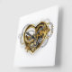 Mechanical, volumetric, steampunk heart with pressure gauge, steel and gold gears on white background. Steampunk style.