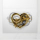 Mechanical, volumetric, steampunk heart with pressure gauge, steel and gold gears on white background. Steampunk style.