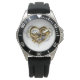 Has heft and feel of expensive stainless steel quartz wrist watches. Solid construction and good looks. Although it had a really top quality rubber strap, I substituted a stainless steel "Shark" style mesh strap, which I think is the most comfortable strap available. Perfect. True colors of original image. Clear, crisp image precisely aligned and spaced.