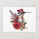 Steampunk Hummingbird with Red Hat and Clockwork Holiday Postcard