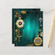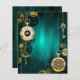 Jewellery, gold watch with a gold chain and keys on a green textural background. Steampunk style.