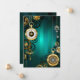 Jewellery, gold watch with a gold chain and keys on a green textural background. Steampunk style.