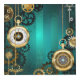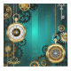 Jewellery, gold watch with a gold chain and keys on a green textural background. Steampunk style.