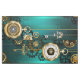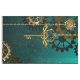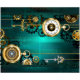 Jewellery, gold watch with a gold chain and keys on a green textural background. Steampunk style.