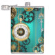 Steampunk Jewellery Watch on a Green Background Hip Flask