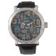 Steampunk design wrist watch featuring vintage keys and key holes.