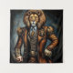 This is a digital art image of a steampunk lion. The lion is wearing a brown leather jacket with gold buttons, a vest and tie. The lion is a symbol of strength, courage, and power. In steampunk culture, it also represents the ingenuity and creativity of the human spirit. The lion in this image is a testament to the power of technology and the human imagination.