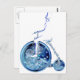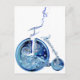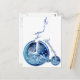 Steampunk man on penny farthing blue white neon postcard
