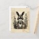 Capture the essence of Steampunk charm with our captivating collage art featured on a postcard. This unique design showcases a dapper figure donning bunny ears amidst intricate shapes, creating a visually stunning composition. Perfect for sending a touch of whimsy, this postcard combines artistic flair with the charm of Steampunk aesthetics.