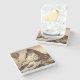The coasters are gorgeous, a quality feel and heavy weight. They look like a precious archeological find. A rustic stone juxtaposed with a modern floral black and white print. I like the way the print goes slightly imperfect on the cut stone edges giving them a kind-of natural beauty.