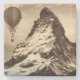 A Steampunk style hot air balloon floats across the Matterhorn mountain. Digital art in sepia