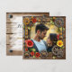 Cool and unique wedding wedding RSVP cards. Steampunk themed with gold, yellow and red metal gears, flowers and a rustic wood background. Upload your favourite picture in the personalise area and edit the text on the back to add your wedding reception meal choices.