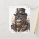 Send a smile with a twist of retro-futuristic charm using this steampunk orangutan postcard, featuring a detailed watercolor illustration of an orangutan dressed in full Victorian steampunk attire. Adorned with brass gears, goggles, shoulder-mounted contraptions, and a top hat, this simian design blends wildlife with imaginative sci-fi fashion in an earth-toned watercolor-meets-ink style.