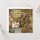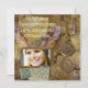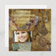 Vintage steampunk photo card with wings, antique watch, skeleton key, gears, stamps, and copper pipe frame with opening for your photo.