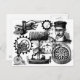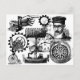 Here is a black and white graphic design featuring the ideals of steampunk or victorian inventions. Add your own text or statement to personalise this wonderful design. Great as a gift for inventors, teachers, scientists, innovators, statement makers, designers and more. Featured are steam powered engine and floating aeroplane, gears, googled man, lightbulb, typewritter, bicycle, hand and rider, clock and compass.