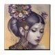 Ceramic tile in a portrait of a black haired, steampunk-themed princess with a copper-coloured, metallic, flower in her hair, and ornate metal ornaments