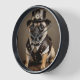 About "Steampug" - A gorgeous pug all dressed up in his Victorian finery, poses happily for the intelligent artist's brush in this unique pet portrait.