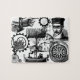 This black and white graphic design features steampunk. Steampunk is modelled after the victorian age of invention,. Add your own words to personalise this design. Featured are a steam engine, gearsgsteam flying contraption, bike, compass, light bulb, man with goggles, typewriter, pointing hand, light bulb and clock. Great as a science award or prize. Get one for your office and use as a brainstorming tool.