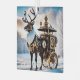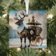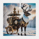 This fun design has a steampunk reindeer pulling a wheeled metal cart.
